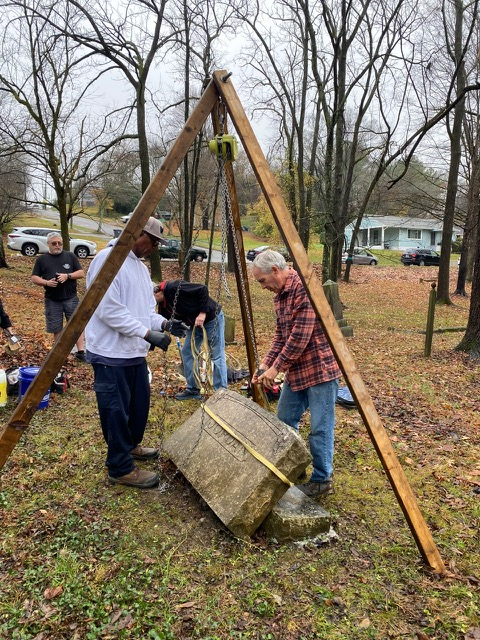 Over time, soil erosion, age, and weather exposure have caused many headstones to shift or sink. Without proper equipment, volunteers cannot safely reset these markers without risk of injury or damage to irreplaceable stones. The tripod allows controlled, preservation-approved lifting of stones weighing 200–1,000 pounds.